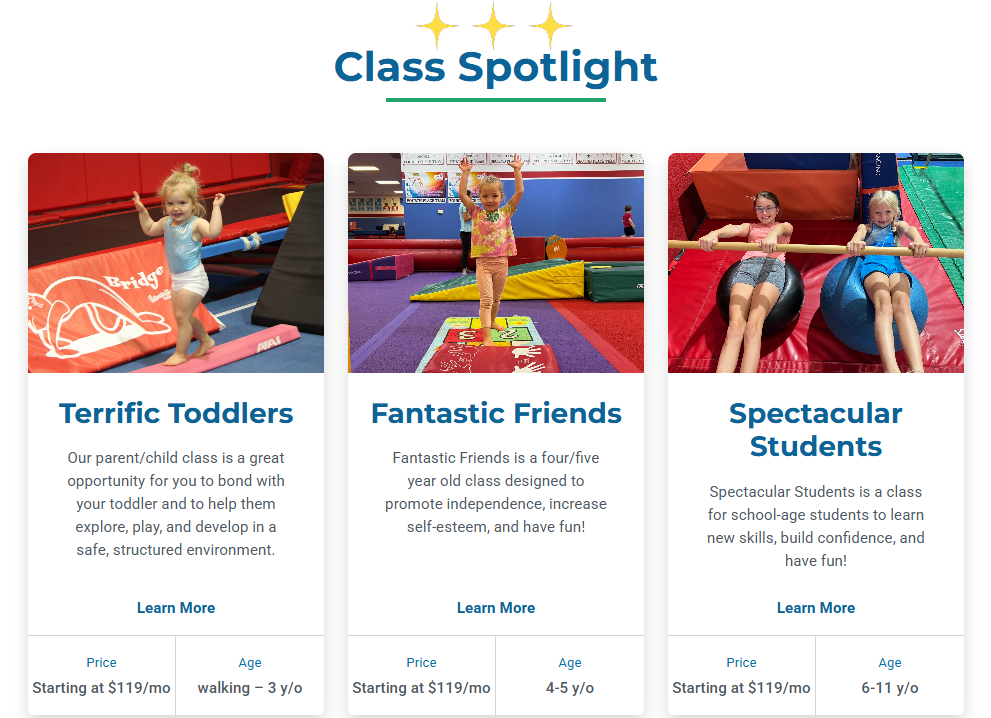 We recently launched a brand new website for Kids in Motion in Queensbury, NY, and the results are clear: parents can now register for everything from Terrific Toddlers classes to full-service Gold package birthday parties without calling the front desk.