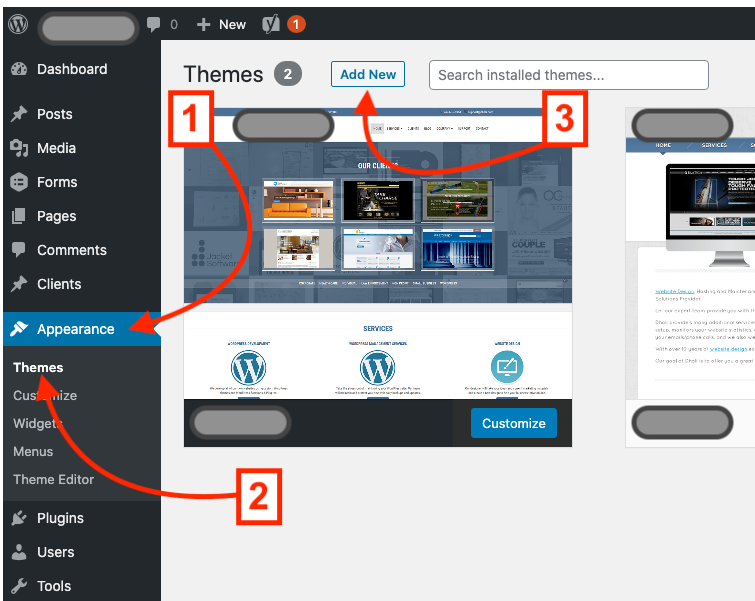 Now that your Underscores Theme is downloaded, head over to the backend of your WordPress website. Once logged in, go to “Appearance” -> “Themes”, click the “Add New” button and then the “Upload Theme” button located around the top of the page. Select the previously downloaded .zip file from Underscores and click “Install Now”. All that should be left is to “Activate” your new blank and almost formate-less theme.